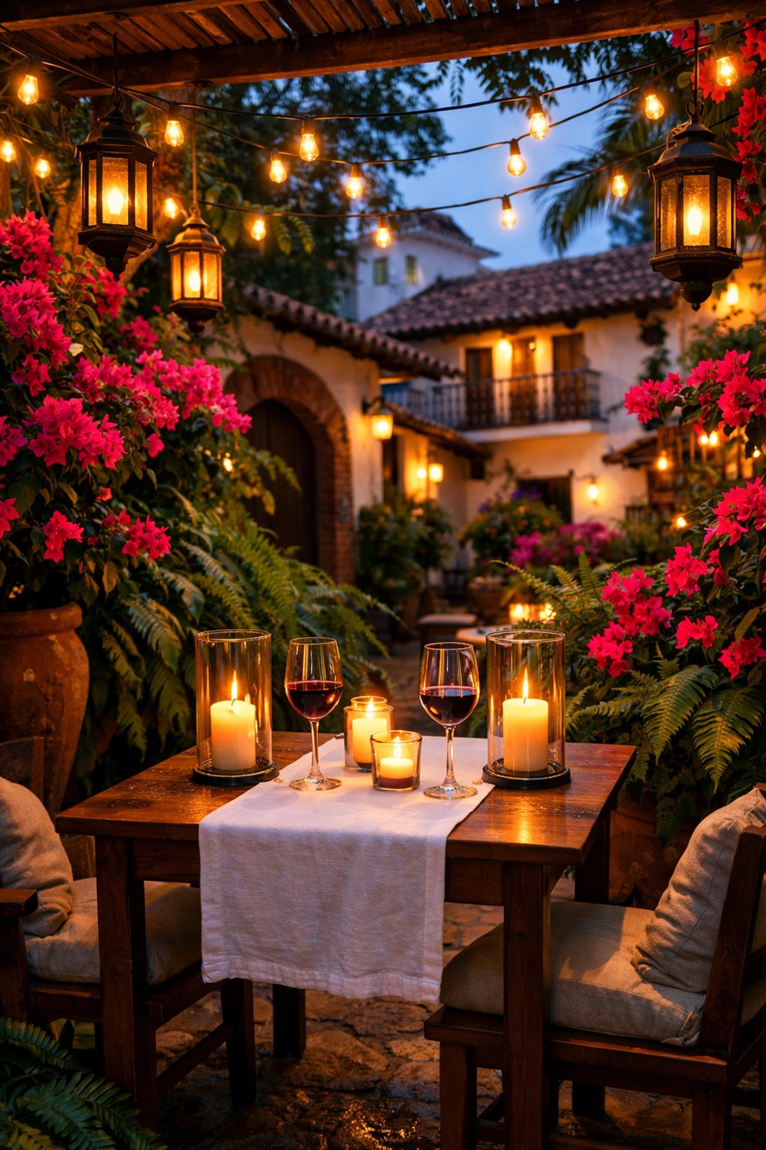 What makes a dinner romantic for us? It’s the details. It’s the way the breeze feels coming off the Banderas Bay. It’s the glow of the lanterns hanging from the trees. It’s the privacy of a small table tucked into a corner of a garden.